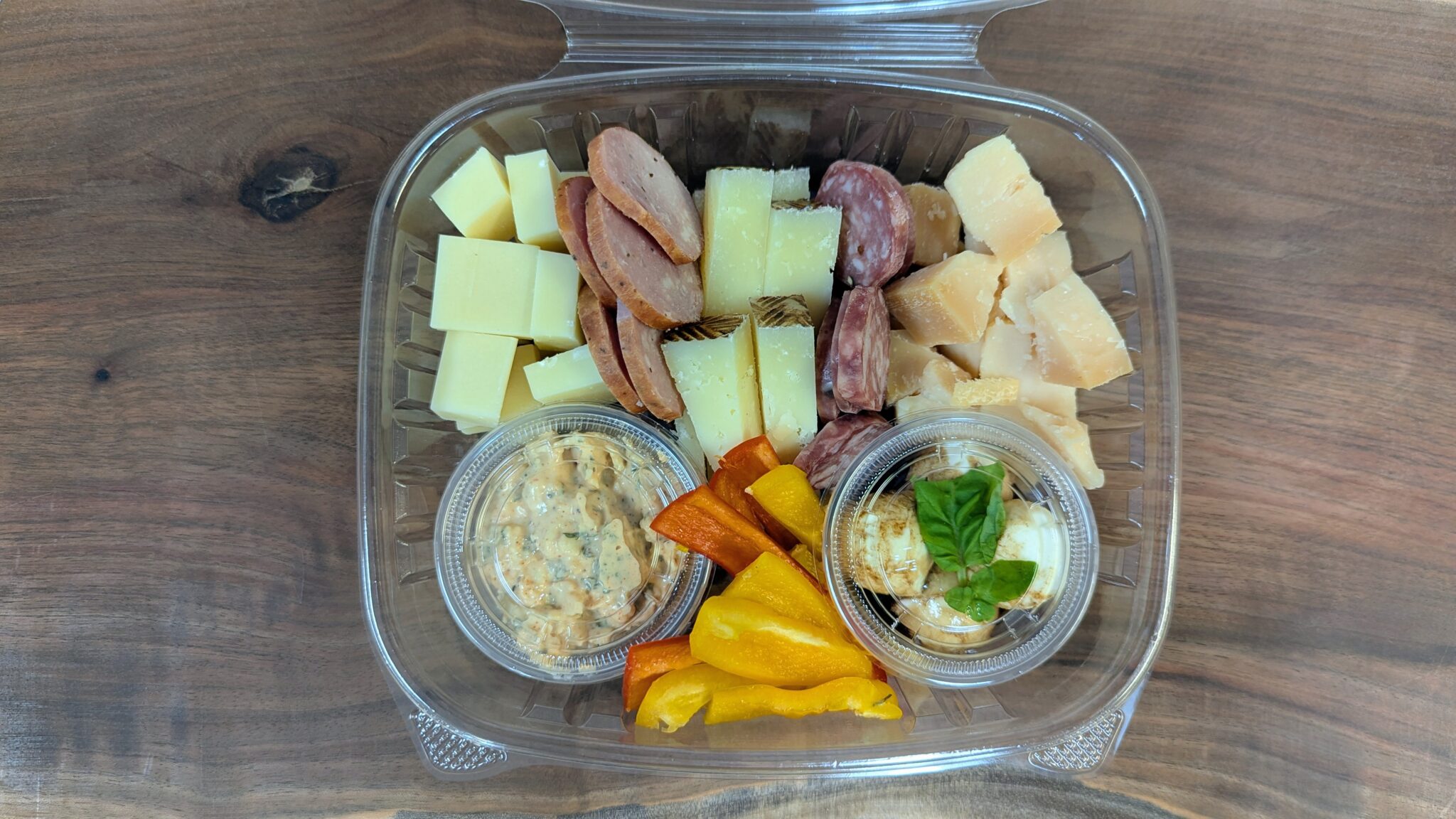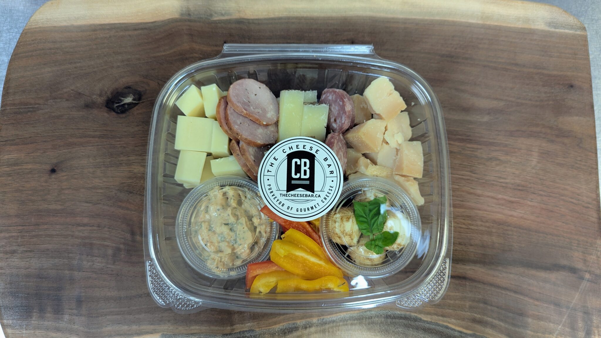 The large sampler has a selection of Artisanal cheese, Charcuterie, accompaniments and crackers. Meat, cheese and accompaniments selection varies in every sampler.