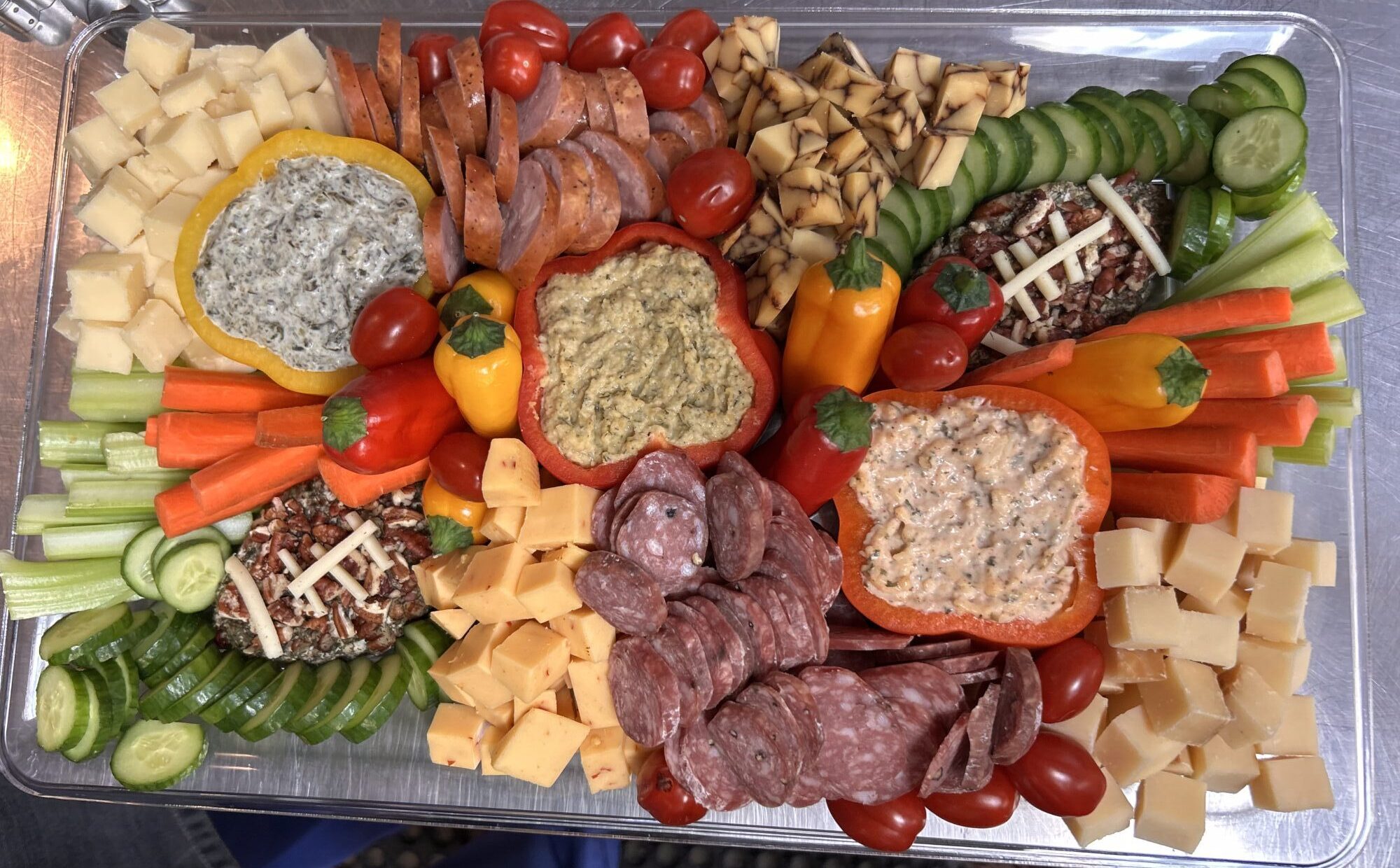 Each platter features a winning lineup of artisan cheeses, premium charcuterie, house-made dips, and fresh seasonal veggies, styled and ready to serve the moment kickoff hits.