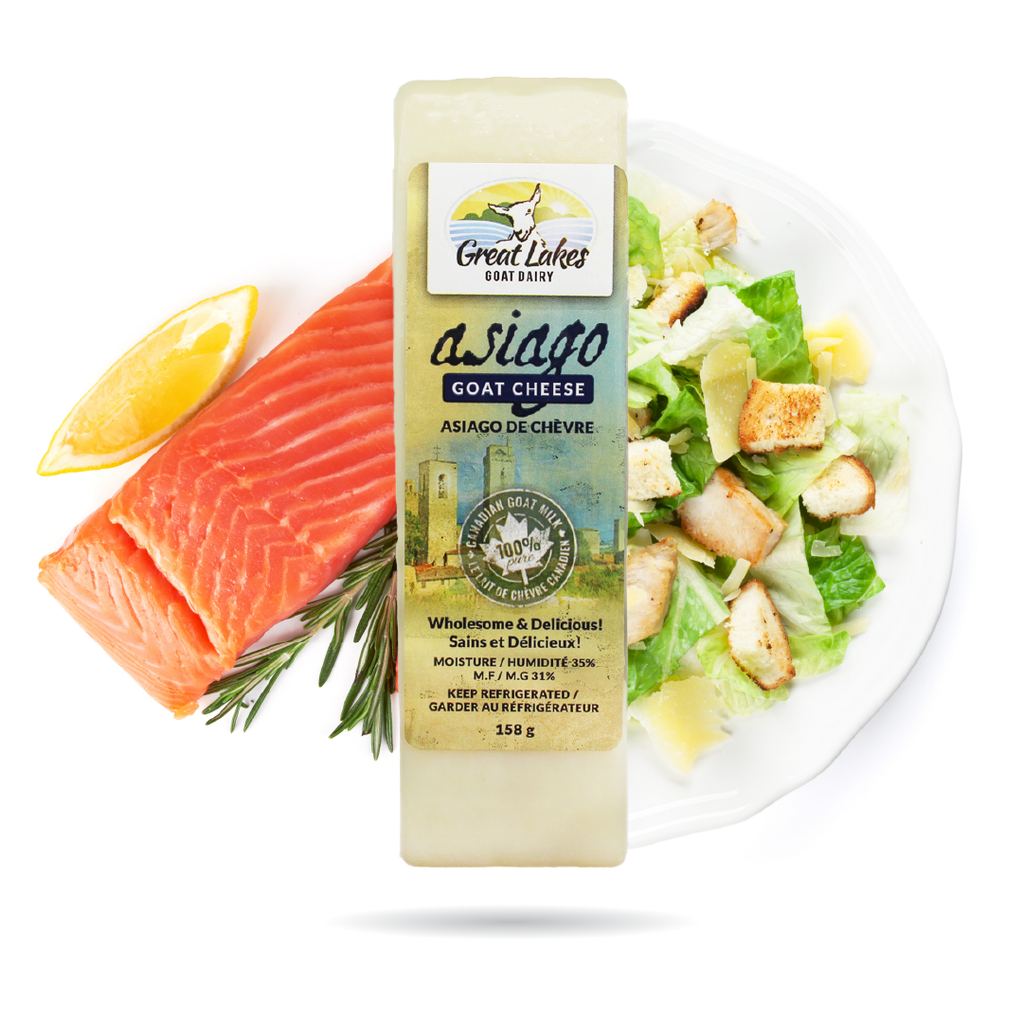This artisan cheese maker takes pride and takes exceptional care of this recipe. Made with 100% single sourced farmstead goat’s milk, the Asiago-Style Goat Cheese is rich with flavour. With a nuttier and creamier taste than the average parmesan style, this full-of-flavour goat cheese can be grated onto your favourite pasta dish or sprinkled on a salad.
